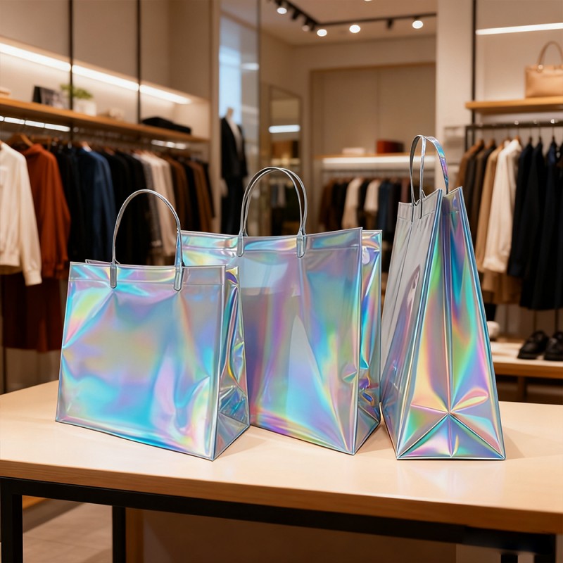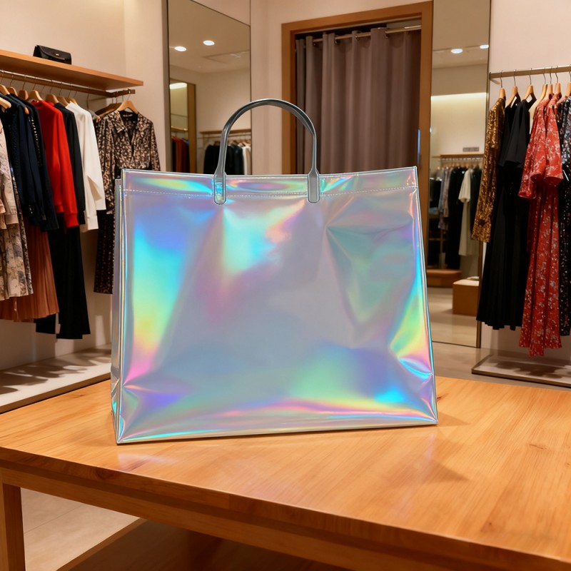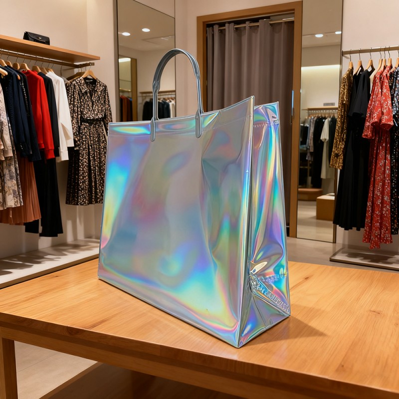 Förtrollande visuella effekter: Regnbågsfärgade ytbehandlingar och dynamiska holografiska mönster som svarar på ljus och rörelse och skapar ständigt föränderliga spektra. Anpassningsbar utskrift av varumärken och mönster. Unik visuell attraktion som sticker ut i alla miljöer. Premiummaterialkonstruktion: Högkvalitativ plast med hållbar laserfilmlaminering. Reptålig och vattenbeständig ytbeläggning. Förstärkta handtag och stresspunkter för ökad hållbarhet. Behåller strukturell integritet under tung vikt. Förbättrad funktion: Plastmaterial och ny teknik kan ge vattentätt skydd för innehållet samtidigt som det gör ytan lätt att rengöra. Med en maximal kapacitet på 10 kg kan den också ge ett bekvämt grepp. Varumärkesförbättringsvärde: Genom att skapa oförglömliga uppackningsupplevelser, uppmuntrar utmärkt utseende att dela och synas i sociala medier, utöka varumärkesexponeringen genom upprepad användning och etablera en högklassig varumärkesmedvetenhet. Miljöfördelar: Den återanvändbara designen minskar förpackningsavfallet. Den hållbara strukturen säkerställer en lång livslängd.